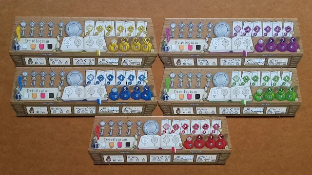 Tak jak już pisałem gra została wykonana bardzo dobrze. Wszystkie elementy są wytrzymałe, a planszetki graczy i plansza główna dodatkowo zapewniają odpowiedni poziom graficzny i klimatyczny. Plusem jest także to, że zasady gry są naprawdę całkiem proste i przejrzyste. Wiadomo, poznanie całej gry i zoptymalizowanie swojej strategii do takich łatwych już nie należy, ale o to też chodzi. Gra ma niski próg wejścia, ale zatrzymuje na długo. Również za sprawą dosyć sporej regrywalności. Położenie miast, niby się nie zmienia, lecz zmieniają się bonusowe żetony i przez to rozgrywka zawsze toczy się inaczej.